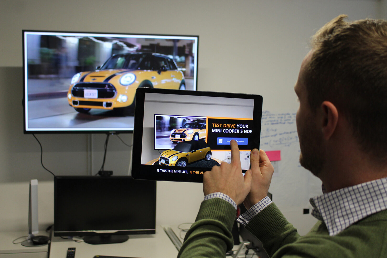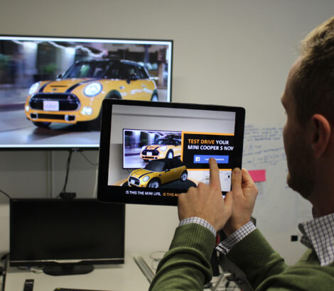 Der Kern von augmen.tv ist simpel wie genial. Bewegtbilder von Fernseh- oder Internetkanälen werden als AR Experience mit zusätzlichen Inhalten synchron angereichert. Die User*innen können mit dem Fernseh- oder Videoprogramm interagieren. Ihr Medienverhalten wird dabei analysiert. Heutzutage passiert das noch, indem das Smartphone oder Tablet vor den Bildschirm gehalten wird. Künftig vielleicht mithilfe von Datenbrillen. Außerdem sollen nicht nur große Sender oder Marken die Möglichkeit haben, augmen.tv zu nutzen, so die Vision des Eyecandylab-Teams. Der Service soll technisch so weit heruntergebrochen sein, dass jede*r YouTuber*in oder Schöpfer*in bewegter Inhalte ihn einsetzen und eine eigene Experience erstellen kann.